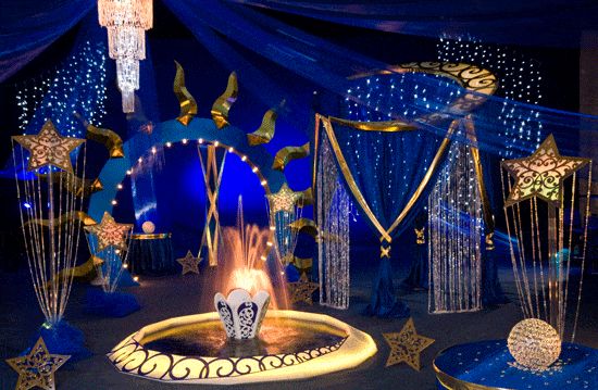 If you are hosting your sangeet ceremony in the evening or in an outdoor setting, an “Under the Stars” theme will create a magical atmosphere. A night sky filled with twinkling stars, soft lights hanging from trees, and an ethereal vibe will add a serene and sophisticated touch to your event. Decorate your dance floor with delicate fairy lights, with your tables set with glowing lanterns and candles. This theme is perfect for an intimate, romantic vibe that emphasizes the beauty of love and togetherness. This celebration under the stars with a whimsical vibe will surely leave everyone in awe.